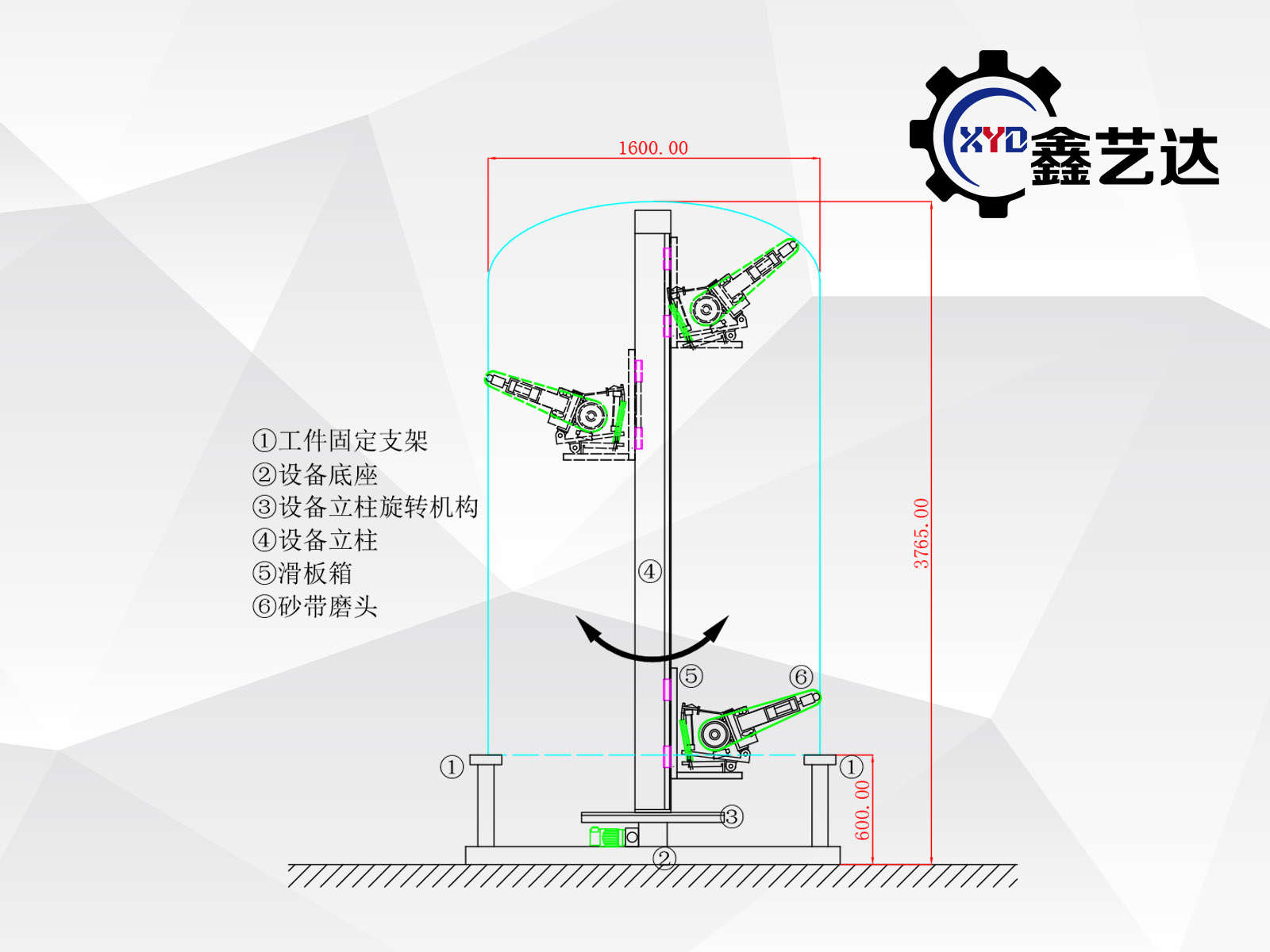工件固定在支架上,不旋轉(zhuǎn),設(shè)備立柱可以變頻旋轉(zhuǎn),帶動(dòng)磨頭完成反應(yīng)釜內(nèi)表面磨削、拋光。配合使用千葉輪、布輪等耗材實(shí)現(xiàn)工件表面粗糙度的提高。