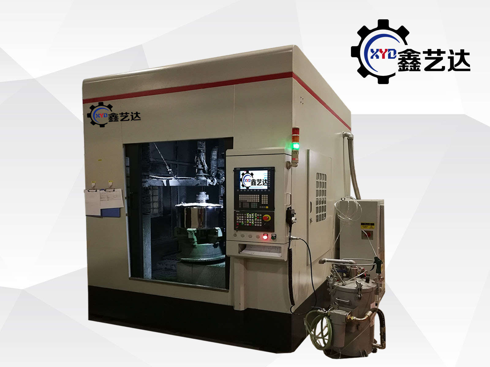 拋光底與蓋&拋光桶身拋光設(shè)備整體護(hù)罩、配集塵設(shè)備,為瑞典獨(dú)資公司天津利拉伐定制數(shù)控拋光設(shè)備,選用西門子828D數(shù)控系統(tǒng),主軸IP65 防爆伺服電機(jī)1臺(tái), 6 臺(tái)電機(jī)采用非防爆 IP54 伺服電機(jī)加防塵罩。