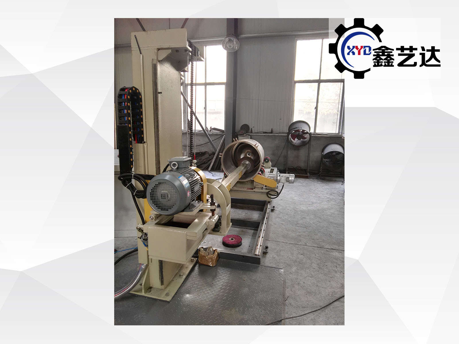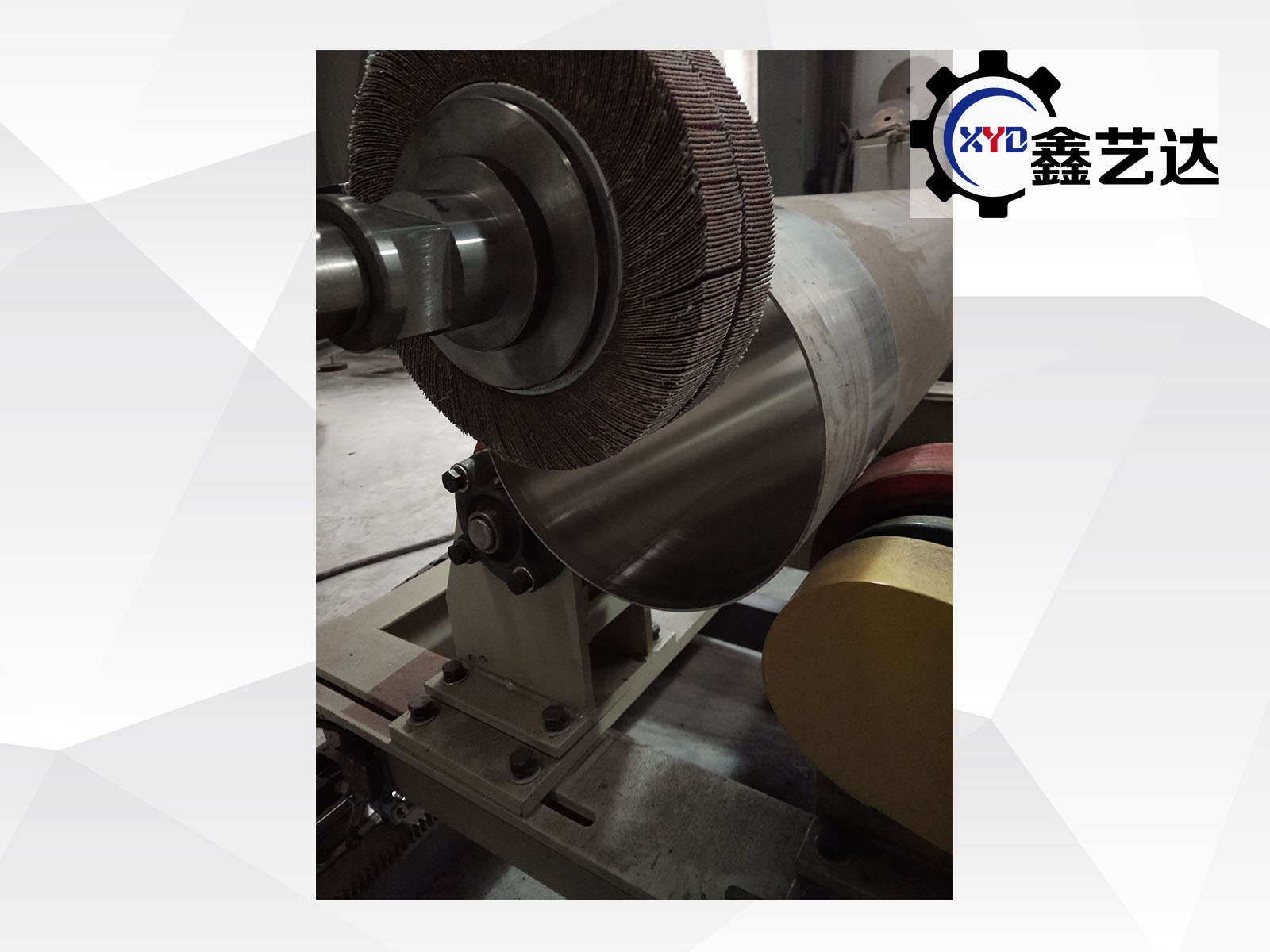 采用千葉輪或布輪、麻輪,橫梁上下點動調(diào)整磨頭位置、橫梁左右固定,設(shè)備底座行走,電機后置,橫梁內(nèi)聯(lián)軸器連接,后端有氣缸鉸鏈實現(xiàn)浮動,前段安裝磨頭的方式進行拋光。
